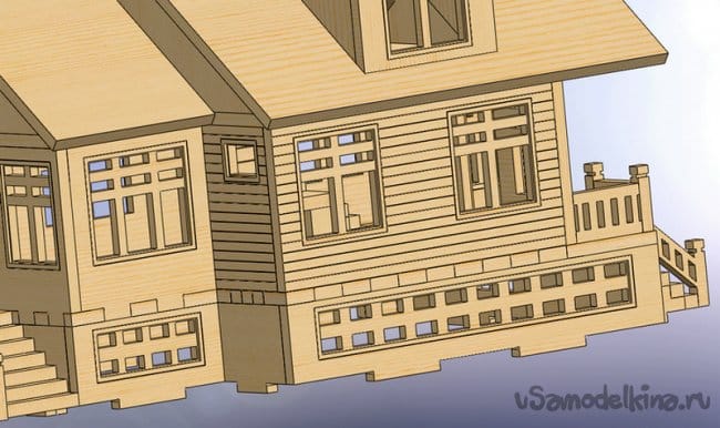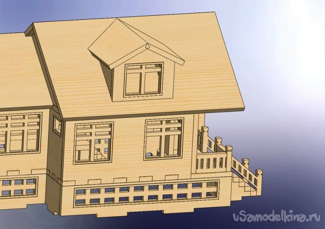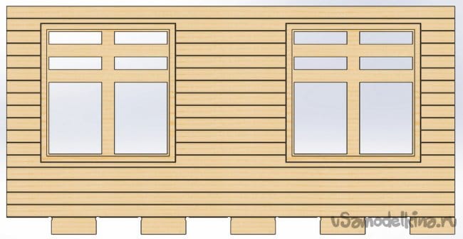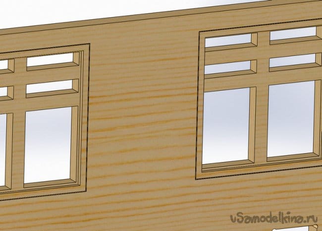 Добавил гравировку для визуального эффекта присутствия наличников. Так же оконные проемы углубил на 1 мм. Так будет смотреться более естественно.