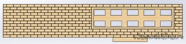 Для цокольного этажа нарисовал имитацию кирпичной кладки.