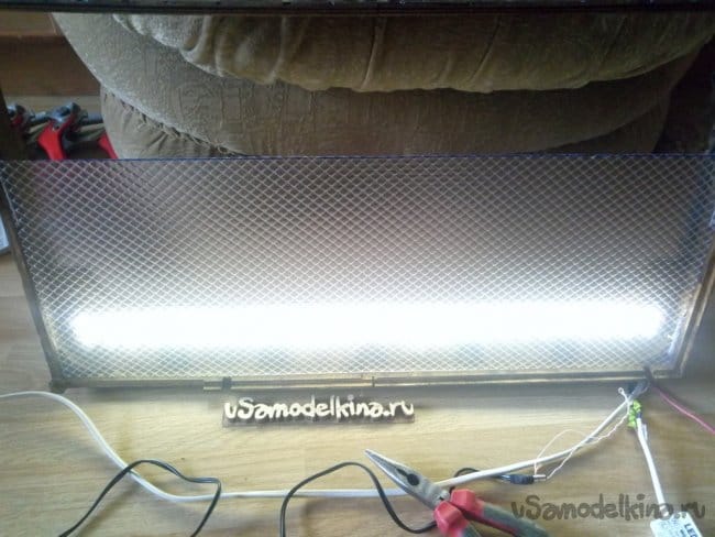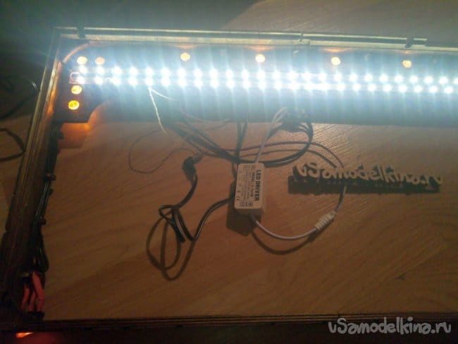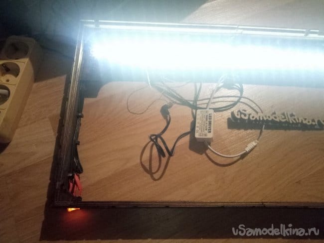 Еще раз проверил сборку перед началом резки. Кое что добавил и изменил. Заменил светодиодную ленту на планку светодиодов из потолочного светильника. Заказал на али драйвер для нее. И вместо оргстекла буду использовать рассеиватель от того светильника.