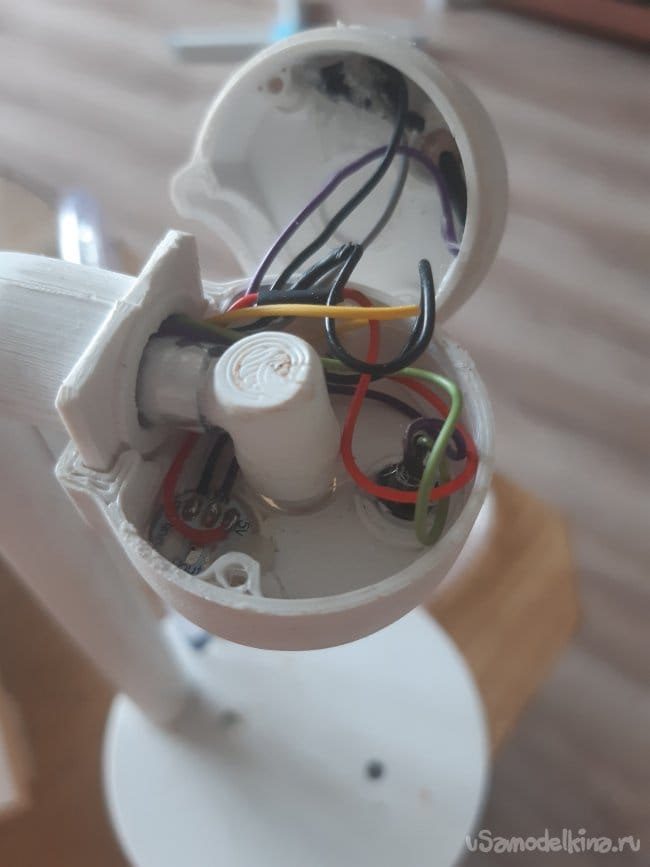 В головке носика размещается фотодатчик + резистор (верхняя половина головки), ИК приемник, пара адресных светодиодов и излив (нижняя половина головки).