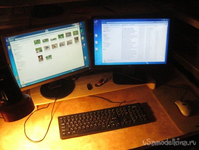 Фото 1. Восстановленный монитор (справа) снова занял свое место. Цветовая температура несколько изменилась, яркость и равномерность подсветки хорошая.