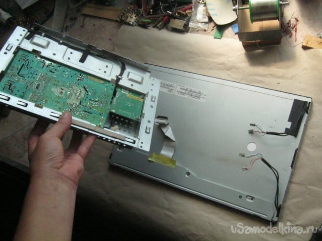 Фото 9. Отделение ЖК панели с платкой управления, от подсветки (держу ее рукой).