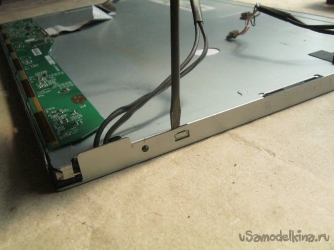 Фото 6. Снятие защитной жестяной крышки с управляющей платы ЖК панели.
