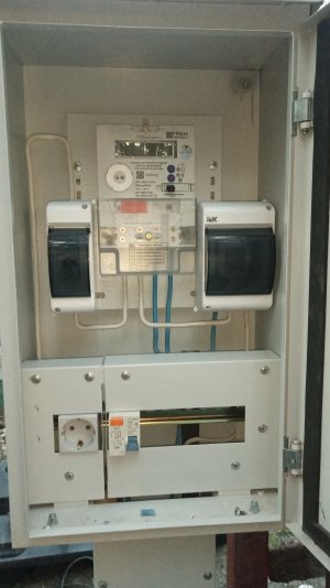 Короче. ВВод в частный дом однофазного тока.На границе участка металлический ящик . Заземлён. (Четырёхметровый штырь в земле). Туда под землёй приходит кабель АВВГ 2х16 с опоры. В нём - вводный автомат, счётчик, ограничитель тока (он-же - реле напряжения.) и розетка на дин-рейке. И от него такой-же АВВГ уходит в дом. В доме уже щит, в нём на входе УЗО и дальше пошло на автоматы... Под домом - заземлительный контур, от которого шина заведена тоже в этот щит.