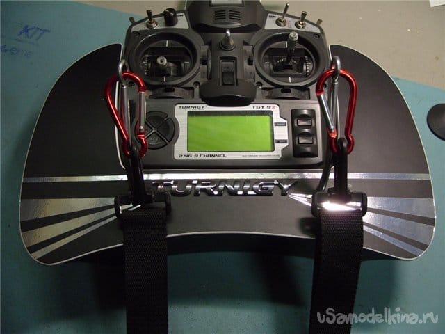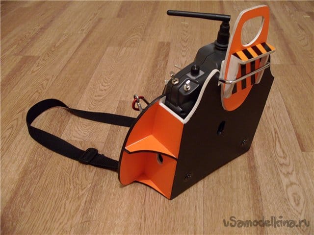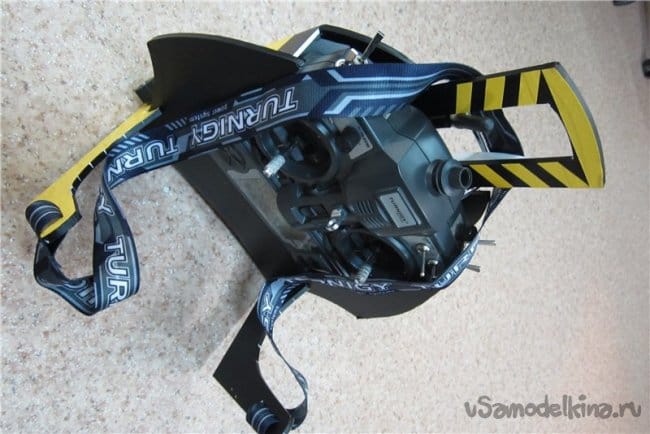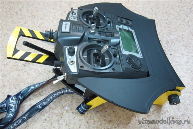 Не понравилось держать передатчик в руках и двигать стики большими пальцами. Нашел похожую картинку в интернете типа как-то так.