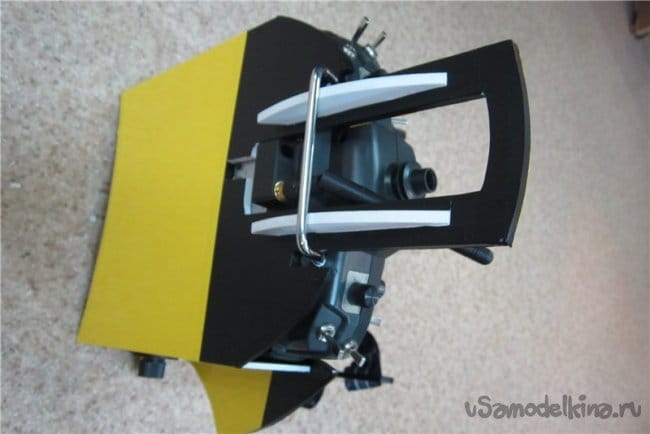 Для нового приобретения пришлось изготовить новый столик немного модернизированный. Нужно отверстие в задней стенке, ВЧ модуль сильно выдается на спине передатчика. Заодно проектирую складывающиеся рога крепления.