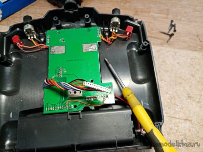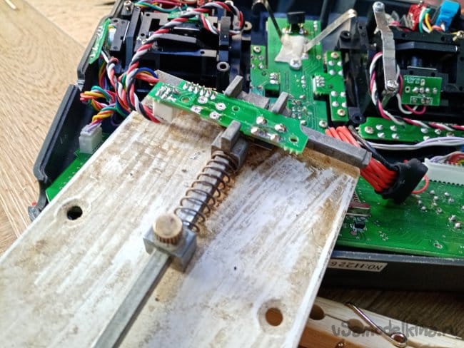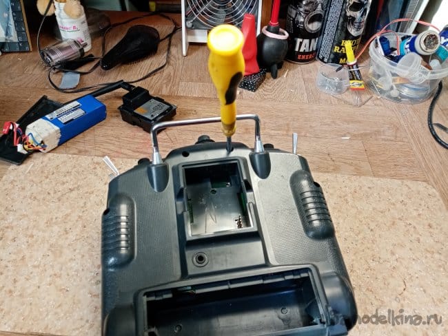 Разбираю передатчик и сгибаю пластину прижима стика буквой Зю. Винтом крепления отрегулировал нужное усилие и газ пошел достаточно туго. Комфортно для меня.