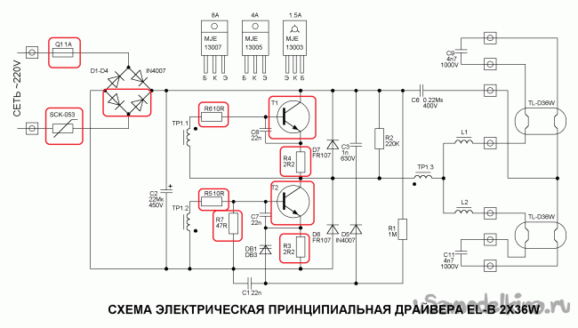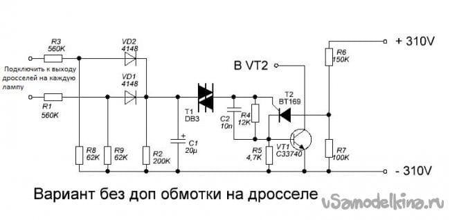 Пришлось приколхозить к ней схему защиты от резонанса склеенную из двух схем от разных ЭПРА.