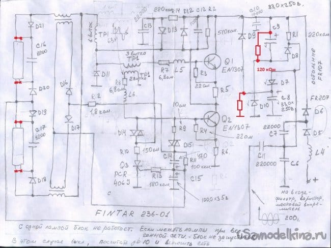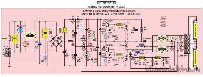 После определённого количества времени в обнимку с паяльником я пришёл к выводу, что из имеющихся у нас ЭПРА для минимальной переделки идеально подходят ЭПРА FINTAR 236.