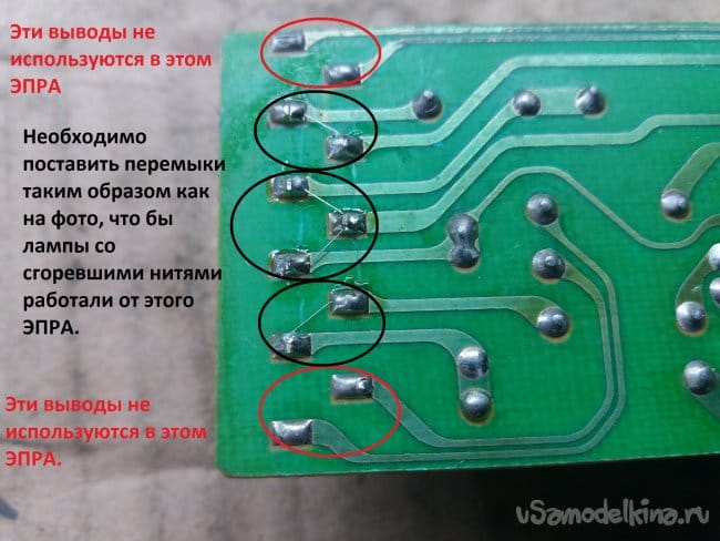 Он заключается в том, что с одной лампой эти ЭПРА не будут работать вообще, сразу уйдут в защиту! Только с двумя лампами работают, это нужно учитывать при модернизации и не забывать об этом!