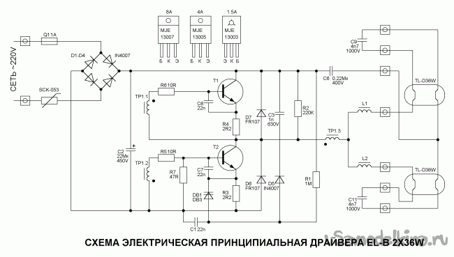 Если кому-то захочется подобных извращений с дешёвыми ЭПРА, то пожалуйста... Пользуйтесь этой схемой на здоровье!