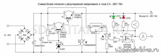Здравствуйте вот решил собрать простенький лабораторный блок питания и автоматического зарядного устройства из трансформатора от бесперебойника напряжение максимум 16 вольт и ток вроде 10а. Возможно ли перестать этот трансформатор на 20 вольт или нет если кто перематывал то напишите, как он работает вот схема регулировки и приставка автоматического отключения. В регулировке по напряжению использую транзисторы кт 805 три штуки а по току 10n06 4 штуки думаю хватит