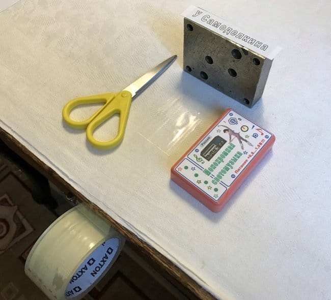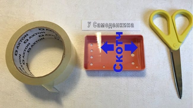 Наклеенная полоска скотча аккуратно разглаживается от центра к краям. Оставшиеся концы скотча обрезаются ножницами до длины 1,5 … 2 см и заворачиваются внутрь крышки корпуса-мыльницы.