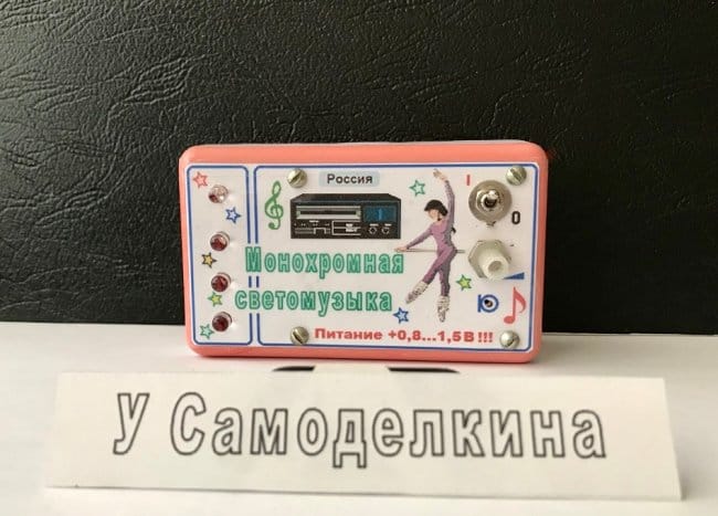 Самое большое достоинство «Монохромной цветомузыки» в том, что она питается всего от одного мизинчикового элемента. При этом поделка сохраняет работоспособность при разряде элемента до 0,8 Вольта!