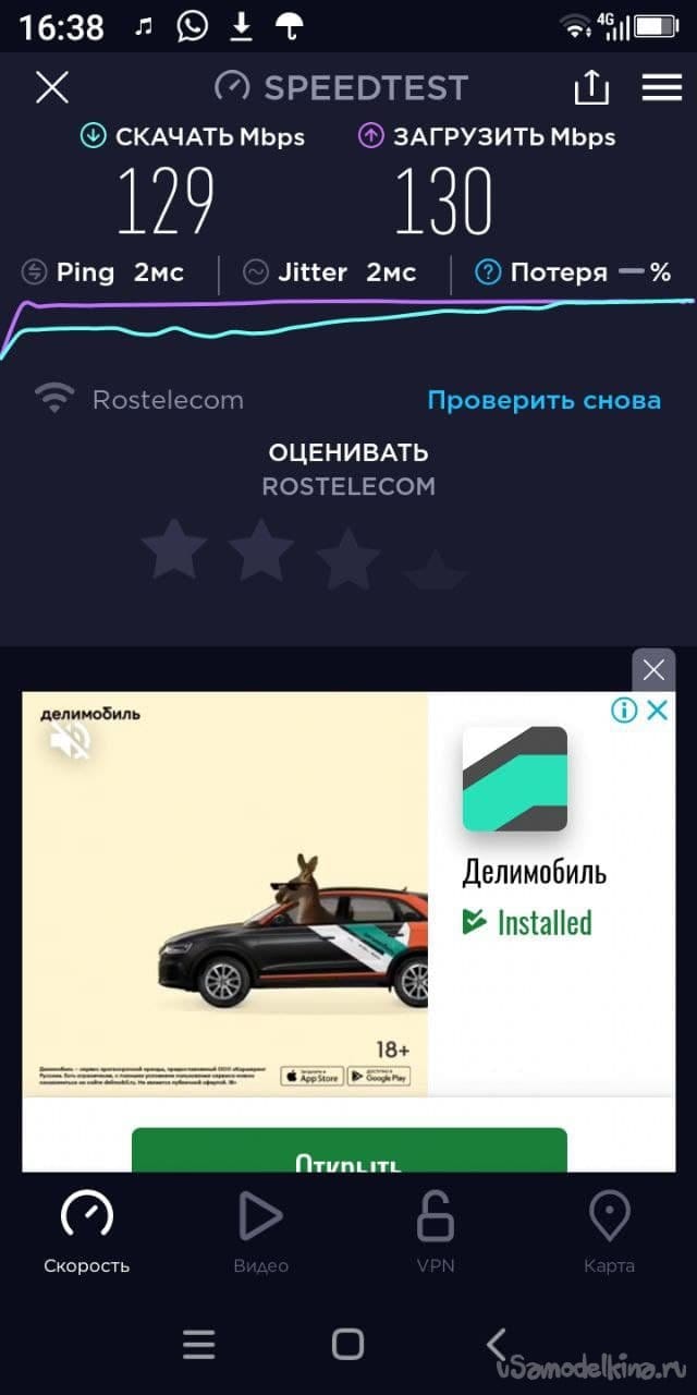 Тест скорости на 50-60 м от обычного роутера на сети 2,4
