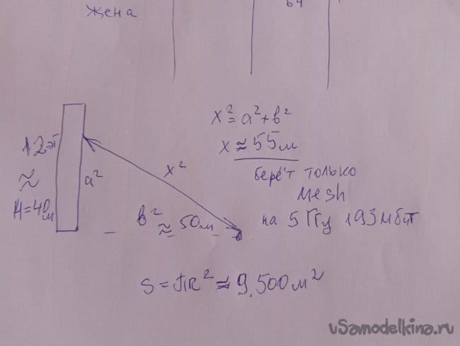 Когда квартира кончилась, я набрался мужества и пошёл на улицу продолжать тестирование, любопытство загрызло. Перед этим я залез на лестницу к обоим устройствам, чтобы понять максимально удалённую видимую точку на земле и оттуда тестировать. Вышел на улицу и мысленно прикинул удаление этой точки от дома. Примерно, конечно, но получилось 55-60 метров. Почти 200 мбит показал МЭШ. Обычный потерял сеть 5 ГГц, а на 2,4 выдал 0,5 Мбит. Анализируем и считаем: если МЭШ поставить в центре круга радиусом 60 м, то площадь покрытия как раз и составит 10 000 кв.м. Некисло. Дальше я отходить уже не стал, трава была мокрой и высокой, а результат я уже получил. Отличный результат! Жалко, что не во всех домах стены такие же, как в 137 серии. И наконец-то на балконе у меня был устойчивый интернет! (пять стен от роутера!!!) Жалко, что после тестирования надо его, МЭШ роутер, вернуть на склад.