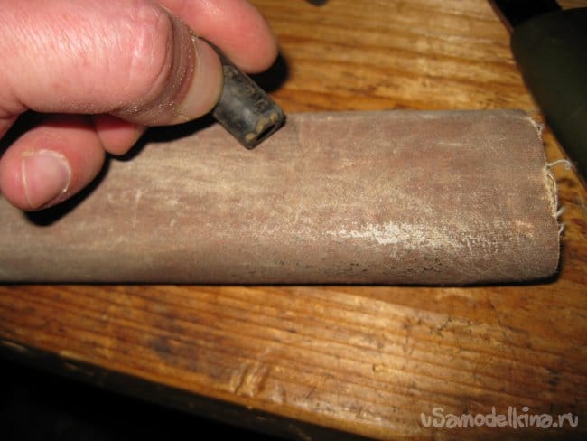 Шаг 3. При помощи наждачной бумаги, я дополнительно слегка скруглил срезанную ножом острую кромку (хотя это и не обязательно), у каждого из отрезков.