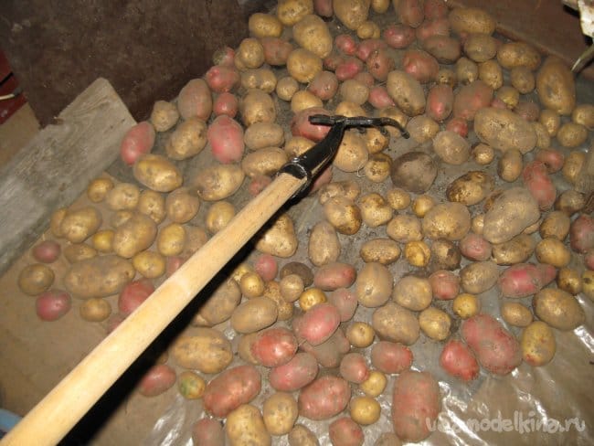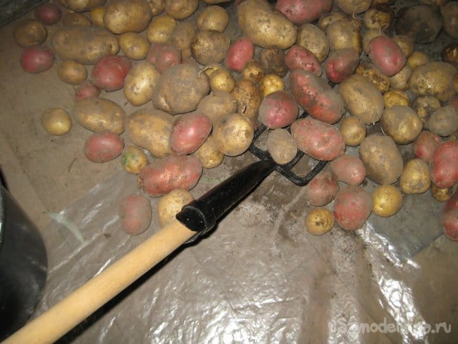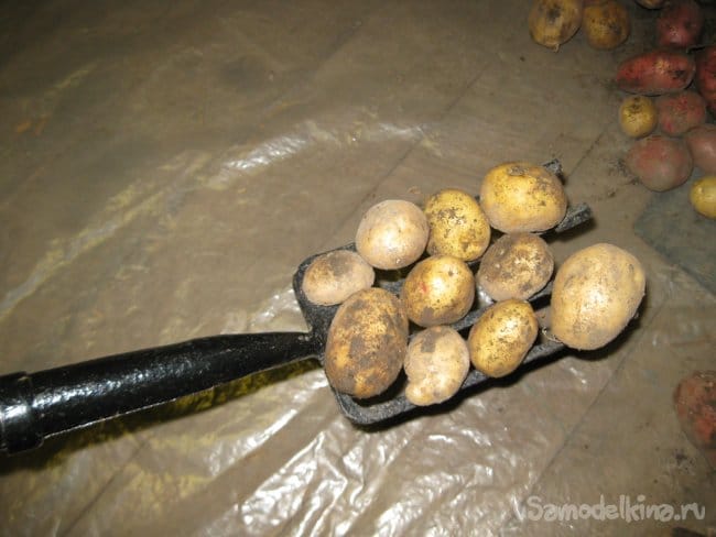 Такие вилы могут очень пригодится во время просушивания корнеплодов на расстеленной на полу пленке в сарае или другом помещении. Кроме того, после просушивания, такими вилами можно быстро и удобно насыпать корнеплоды в ведра или иные емкости, для их дальнейшей уборки на хранение, например, в погреб или подпол.