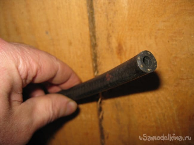 Вначале отмечу, что для подобных наконечников, лучше использовать резиновый шланг высокого давления от каких-либо пневматических или гидравлических устройств. Например, в моем случае, идеально подошел шланг от старого ручного компрессора (насоса). Этот шланг имеет небольшой внутренний диаметр и довольно толстые стенки.