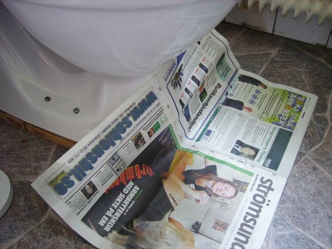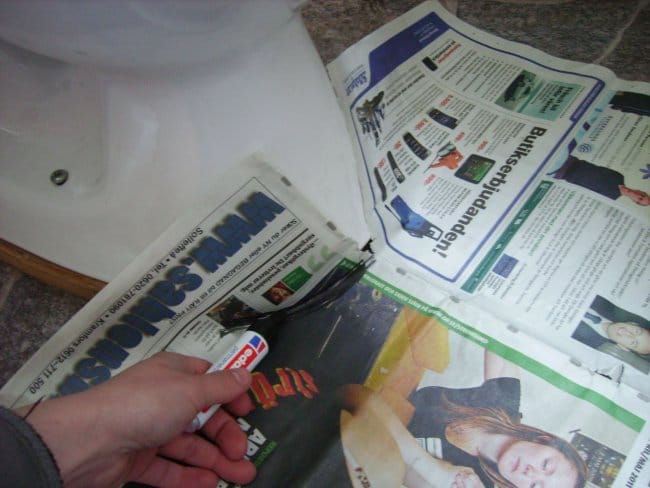 Для этого возьмем лист газеты и разрежьте его до половины и разметьте маркером!