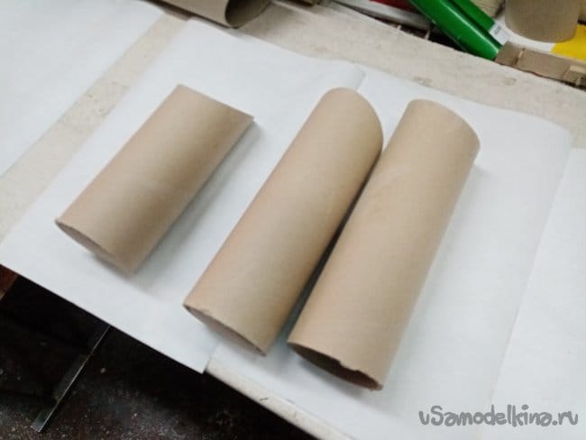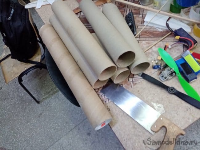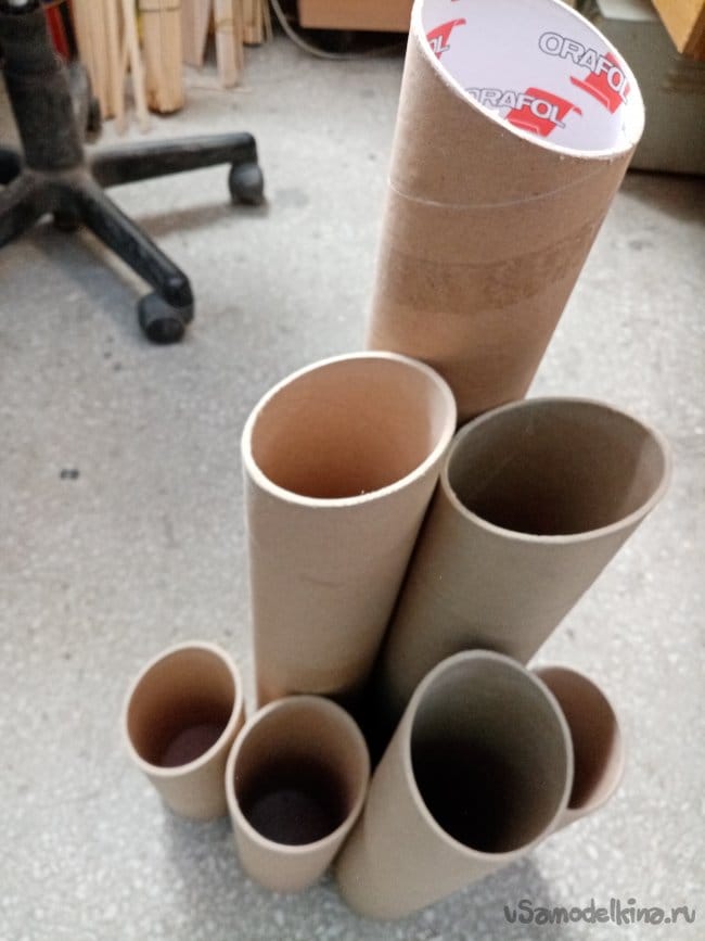 Найдено немного бумажных трубочек. Буду делать органайзер для вертикального хранения реек и немного рассортировать хотя бы по длине. Трубочки весьма хорошо режутся простой пилой с мелкими зубьями. Порезал достаточно много заготовок различной длины.