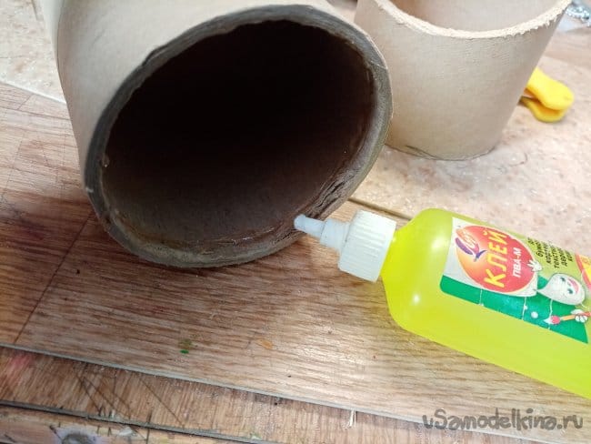 Затем наношу любимый клей Титан на край картонной трубочки. Для удобства пользования разлил в бутылочки от ПВА. Когда клей в них закончился промыл в теплой воде, просушил и разлил титан. У флакончиков тонкие носики, удобно наносить в трудные места.