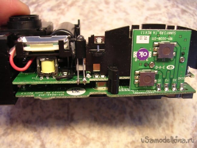 Объективчик до смешного прост. Просто дырочка с линзочкой. Затвор открывается при помощи соленоида. Простота подкупает, интересно его тоже собирали в гараже.