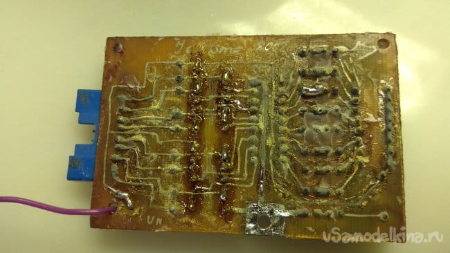 Выпаял неисправные микросхемы. Пятачки на плате местами оторвались, даже возникла мысль сделать новую плату, но поленился