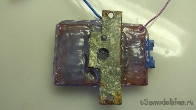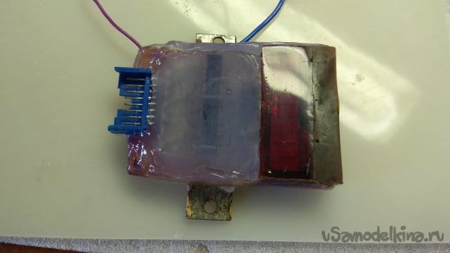За всё время существования с 2002 года электронного датчика, такая поломка случилась второй раз. Первоначально в качестве изоляции индикатора от влаги я использовал эпоксидную смолу. Первый раз разбирал поломанный индикатор достаточно долго, грея его в духовке (строительного фена у меня тогда еще не было), размягчая эпоксидную смолу и удаляя ее отверткой. После первого ремонта залил плату прозрачным силиконовым герметиком. Снимать герметик оказалось немного легче, минут за десять я его оторвал.