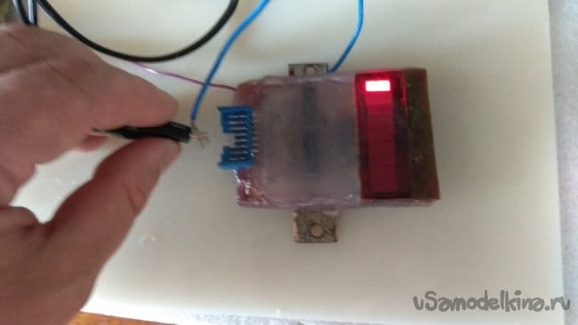 Прохожу проводом соединенным с минусом питания во входному разъему индикатора: