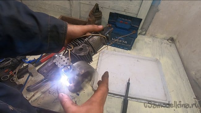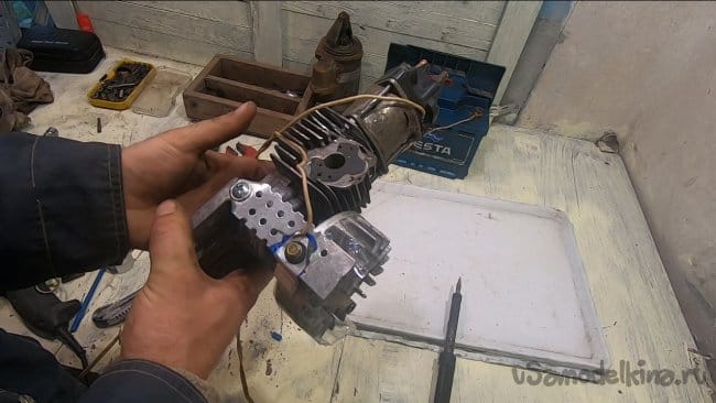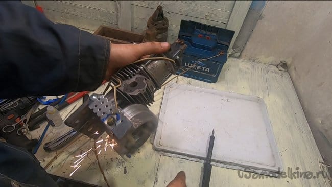 Также подготавливаем мотор, его нужно разобрать и срезать верхнюю часть цилиндра болгаркой или даже ножовкой по металлу. У меня мотор был подготовлен заранее, он был использован ранее в другом проекте.