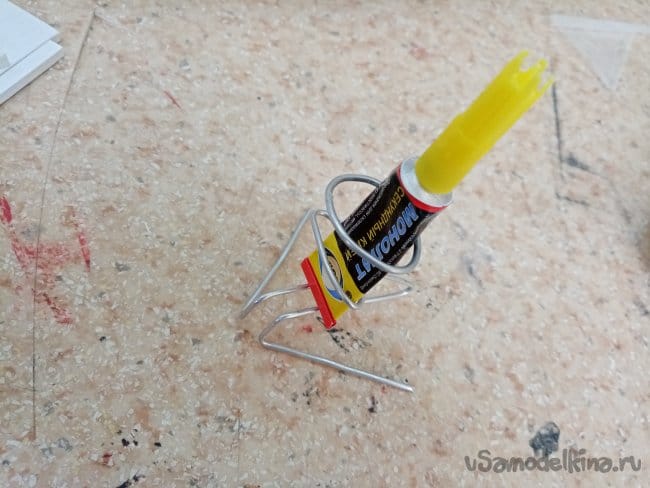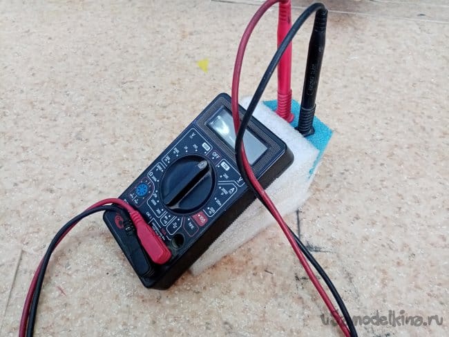Изначально делал из толстого провода с изоляцией. Работая с фотоаппаратами изготовил подставку из упаковочного, жесткого поролона. Сам прибор закрепил при помощи двухстороннего скотча.