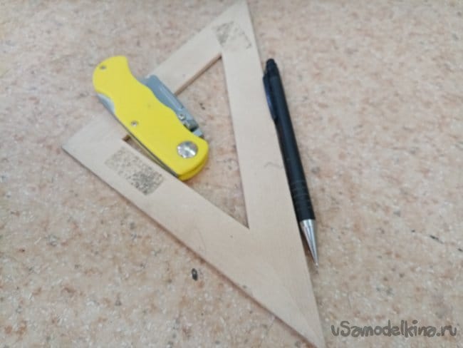 Из инструмента, угольник, нож, карандаш. Еще и клей.