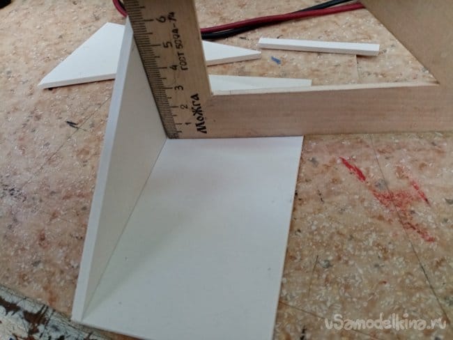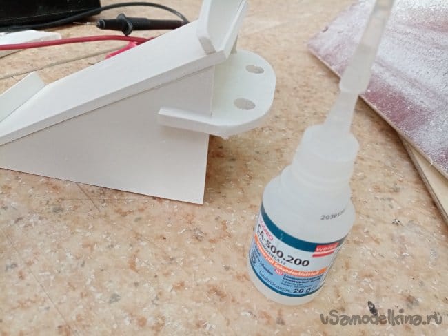 Начинаю склеивать пластик циакрином. Угольник использую для контроля перпендикулярности.
