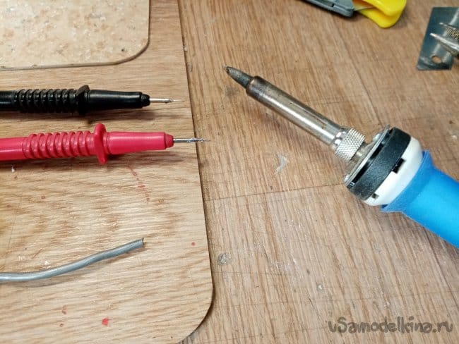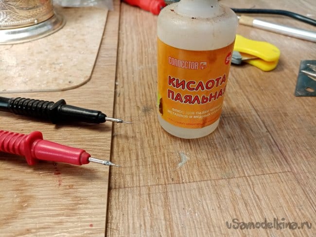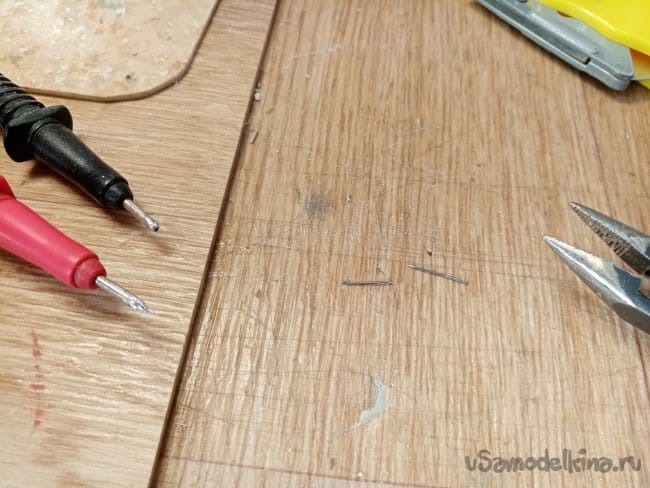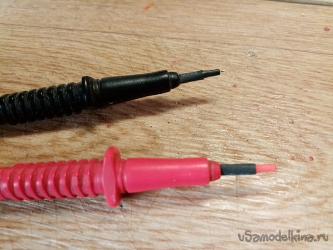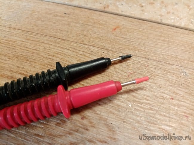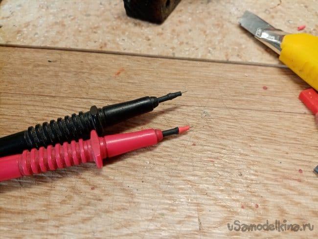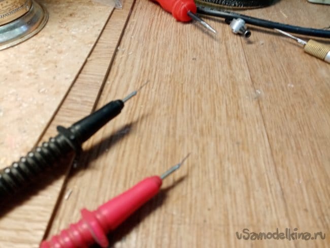 Нужно слегка переделать иголки на щупах. При ремонте фотоаппаратов мне нужны были длинные тонкие иголки. Пролазить во всякие места на платах. Иголками можно просто проткнуть изоляцию на проводе, или герметике, поменять чего там проистекает. В моделке "чудо-дети" регулярно гнут и ломают тонкие кончики. Для начала выпаиваю иголки.