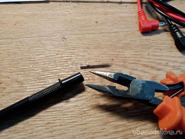 Задача-извлечь контакт щупа из ручки, провод уже сам демонтировался.