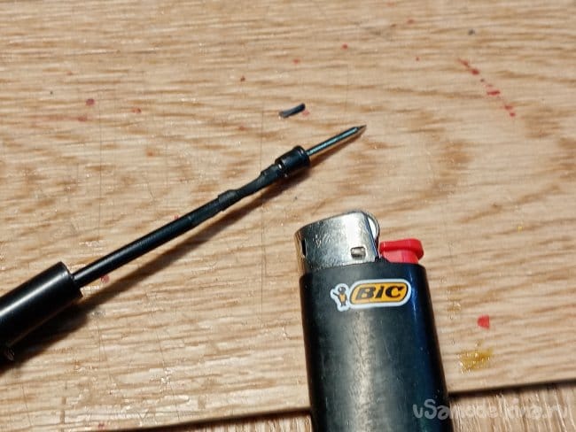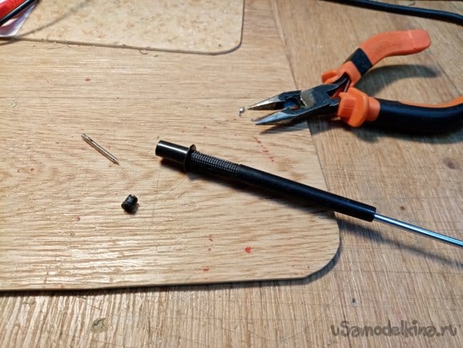 Спустя несколько минут осторожно извлекаю железяку из ручки при помощи тонкогубцев.