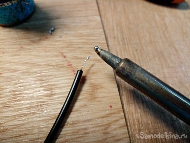 Нагреваю металлическую часть на жале паяльника.
