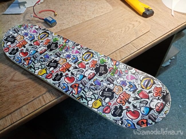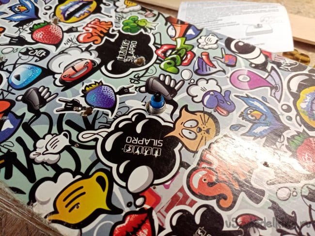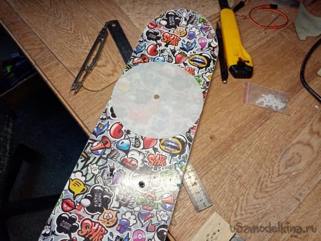 Попалась в руки доска от сноуборда в смысле платформа. Шасси сломано и восстановить его не удалось. Понравились веселые картиночки и вообще веселый настрой фанерной досочки. Практически не побитая не поцарапана. Протер тряпочкой. И чего бы такое сгородить из этой заготовки.