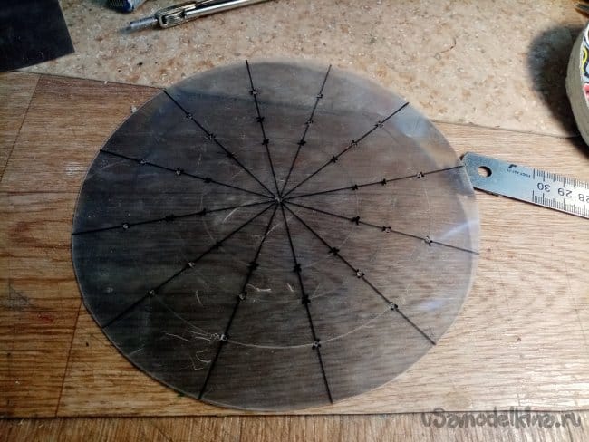 При помощи "спец-трафарета" размечаю кружочек на сектора.