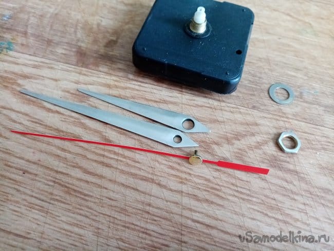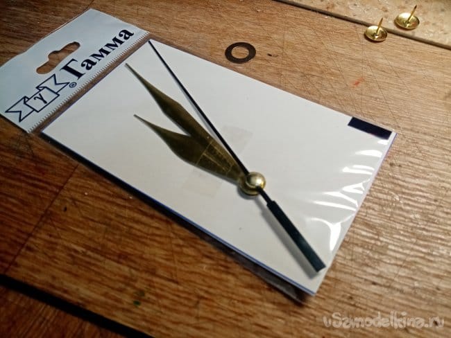 В наличие не было стрелок нужного серебряного цвета, просто смыл краску с черных. Полирнул малость.