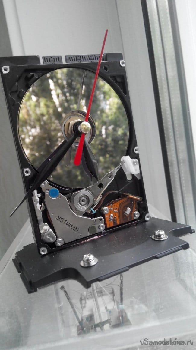 Ну и практически "классика", часы из диска. Изготовлены достаточно давно. Таскал с работы на работу и сейчас стоят на моем столе.