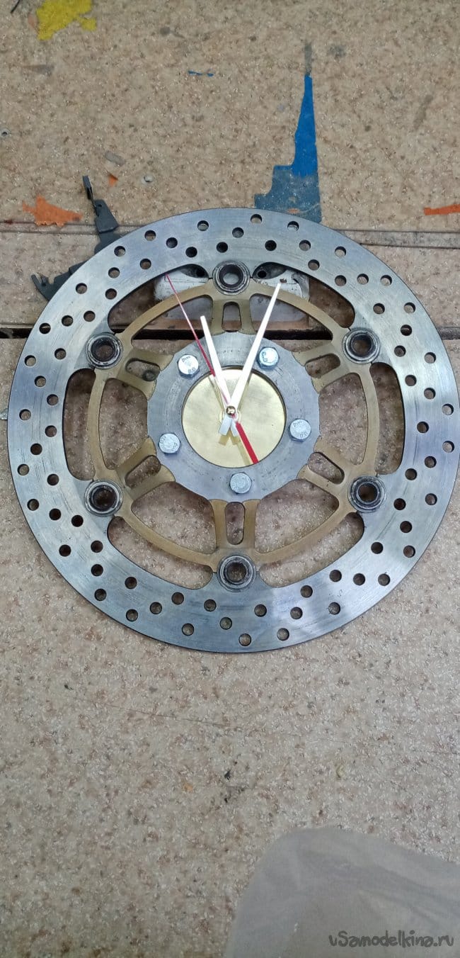 Есть в моей коллекции часы из тормозного диска от мотоцикла. Висят у младшего сына в гараже. Заядлый мотоциклист.