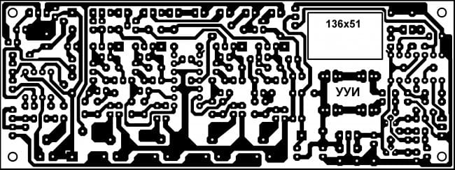 Печатная плата УУИ выполнена из двухсторонне фольгированного стеклотекстолита толщиной 2 мм (смотрите рисунки 2, 3).