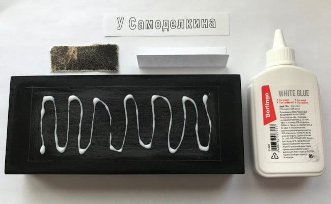 Штангенциркулем размечаем местоположение рисунка ФП на передней стенке корпуса. «Зашкуриваем» получившуюся площадь и наносим на неё тонкие «дорожки» клея ПВА.