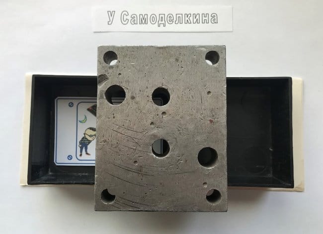 Центры отверстий в корпусе намечаются шилом (накернивать на хрупкой пластмассе нельзя) методом трафарета, используя в качестве трафарета рисунок ФП. Затем - сверление меньшим и номинальным диаметром сверла. Далее – обработка отверстий круглым надфилем однонаправленными движениями внутрь корпуса.
