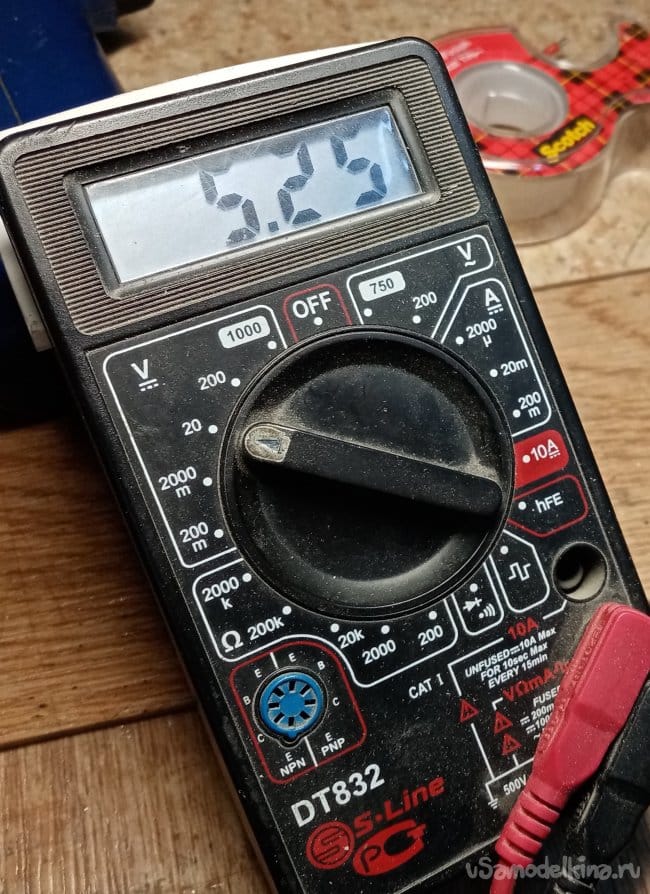 Перед окончательной сборкой еще раз проверяю сборку на вольты и амперы. Просели малость старички, но держатся.