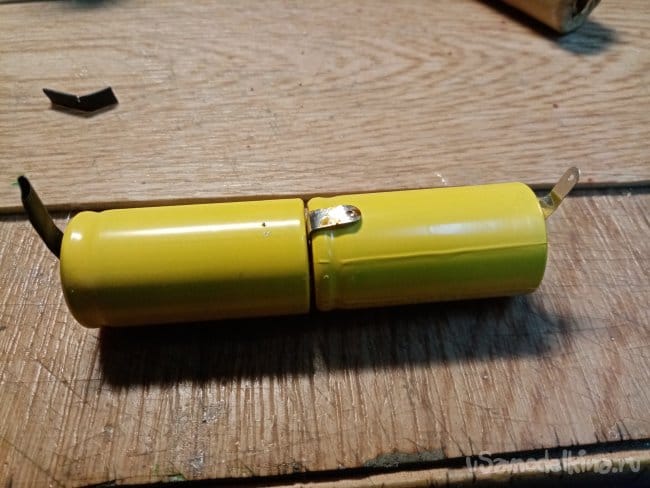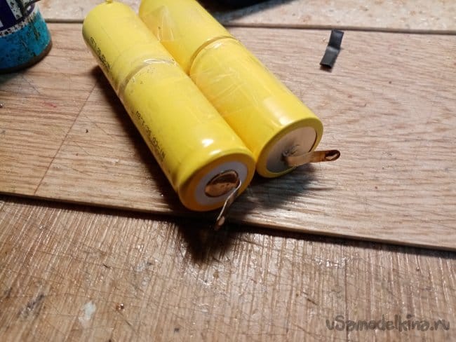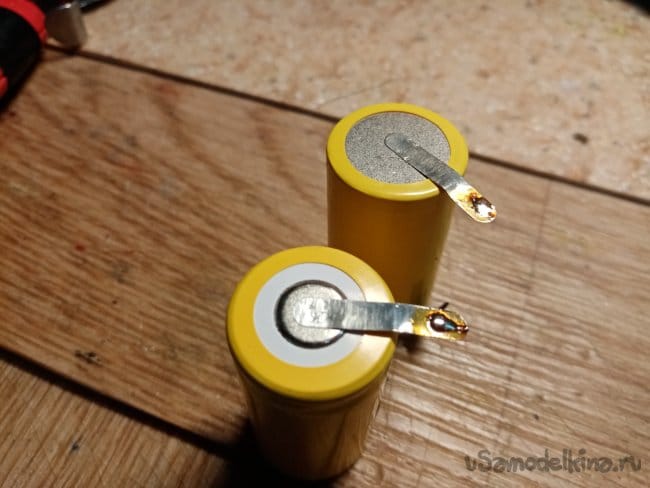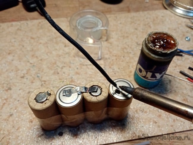 Затем немного олова на железячки аккумуляторов и можно соединять в блок.