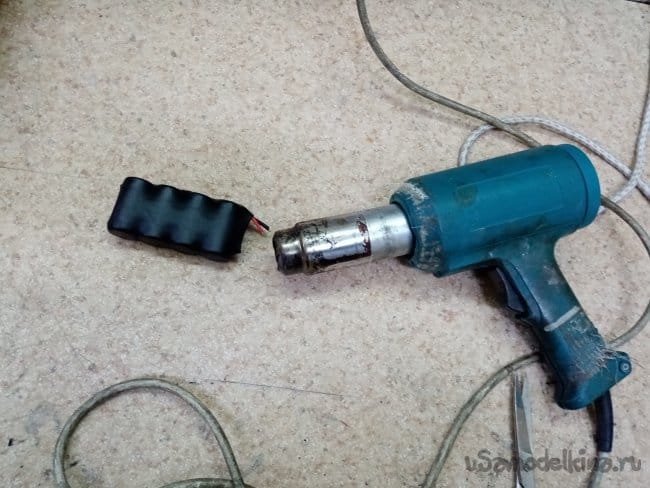 Феном осаживаю трубу и готов блок на бортовое питание. Для приемника как-раз нужно 5-6В. Их есть у меня.