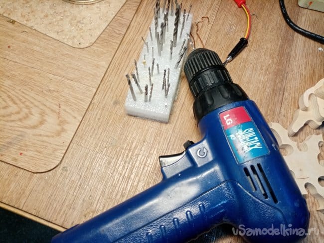 Затем силы покинули крутилку. Заряда хватало на десяток отверстий со сверлом на 5 мм.
